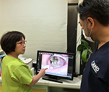 導入後の成果として、まず思ったのは患者さんの歯磨きが上手になった事です。まず、私が術者磨きを行い、歯ブラシの動きや力加減などを感じ取ってもらいます。次に映像を見てもらう事により感覚とイメージがご家庭で行う時に鏡を見なくてもできるようになり、結果に結びつくことが一番大きいです。そして、患者さん自身が映像を見る事で歯肉の腫れやプラークの付着の判断がご自身でできるようになりデンタルIQが自然とあがっていきました。 感覚的なことですが、ADMENIC DVP2の操作は、機械や機材を扱うというよりは、タブレットやスマホを使う感覚に近いので、身近に感じ直観的に扱えます。結果、治療に専念することができるので顕微鏡の使用時間が多くなります。