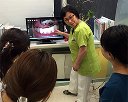 ネクストデンタルでは、衛生士が主体の「拡大視野における歯科衛生士のスキルアップ」を目的とした勉強会「ちっころ教室」を不定期に開催しており、その勉強会の場でもADMENIC DVP2を活用しています。