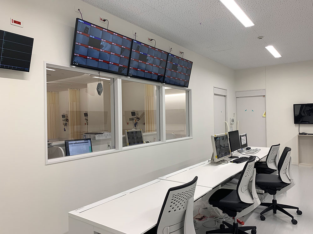 マルチ表示視聴モニターが3枚あり、全手術室の状況が確認できる。