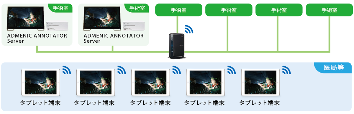 ADMENIC ANNOTATOR Server1台に対して、最大10台のタブレット端末の同時接続が可能です。