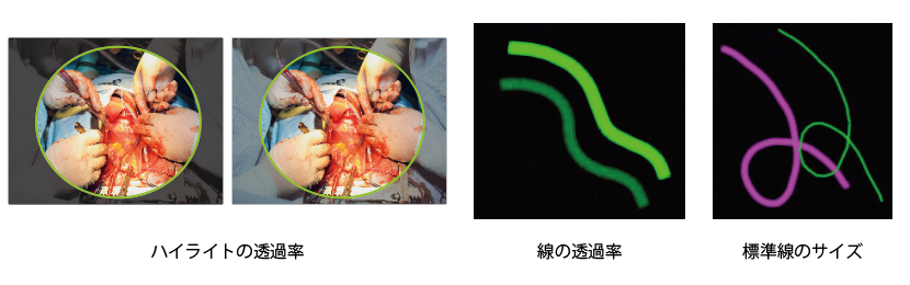 線の透過率や指定範囲外の減光機能、一定時間経過すると自動で描画が削除される自動消去機能等を搭載しています。
