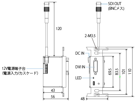 ※SDI 5CFBケーブルを使用した場合。SDI 3C2Vケーブルでは20m。ただし設置環境、受信装置に依存します。 - 前面LEDにステータスを表示