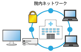 サーバーを介さず、直接PCなどの端末のIPアドレスを参照してユニキャストで接続し、ビデオ会議が行えます。院内のクローズドネットワークのみを使用するためセキュリティ面でも安心です。