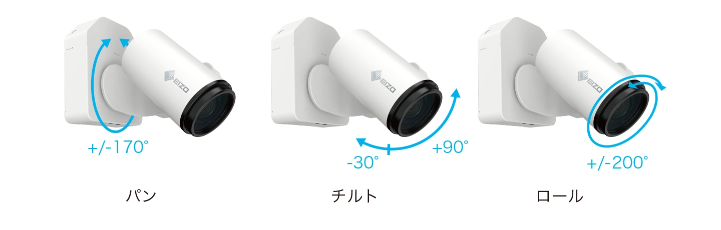 高精度のステッピングモーターを内蔵した雲台部は、パン/チルト/ロールが可能で、理想的な位置に被写体を捉えることができます。