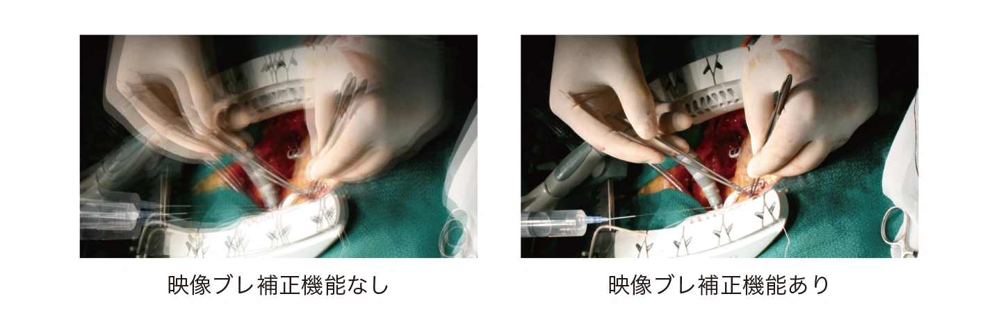 カメラヘッドには独自開発の「映像ブレ補正機能」を搭載し、空調などの影響による慢性的な微振動や、ズーム時の微細な揺れを軽減します。
