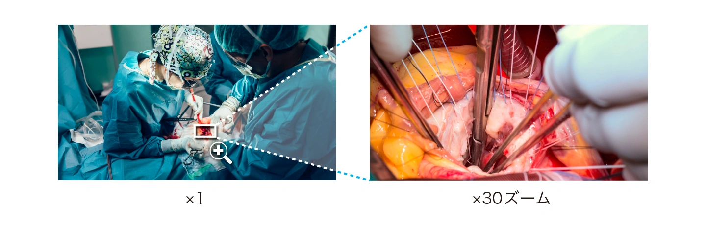30倍ズームレンズとブレ補正機能を内蔵した4K 60p対応カメラヘッドと、多彩な位置決めが可能な3軸雲台機構を一体化した 設置性にも優れた術野カメラシステムです。