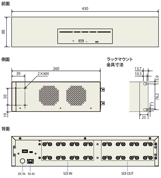 | 外形寸法 (突起物除く) | 430(W)×88(H)×260(D) mm | |